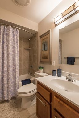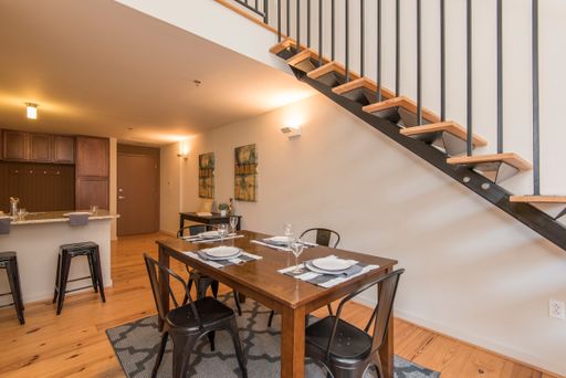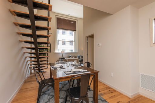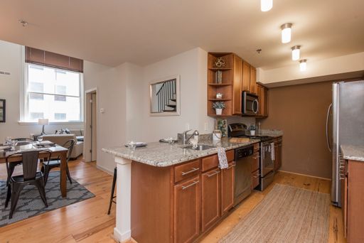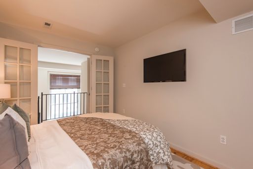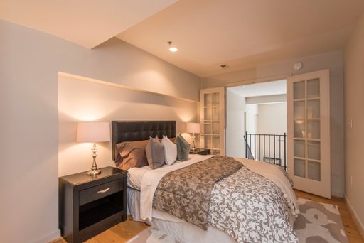 Welcome to this stunning two bedroom + den bi-level apartment in Washington Square West! Enter into a lovely foyer with a hall tree and full bathroom. This open concept kitchen / dining space is complete with granite countertops and stainless steel appliances. Please enjoy the spacious sun filled living room, bonus room, and in-unit laundry all on the first level. Upstairs you'll find two bedrooms with beautiful french doors, ample closet space, and a jack + jill bathroom.