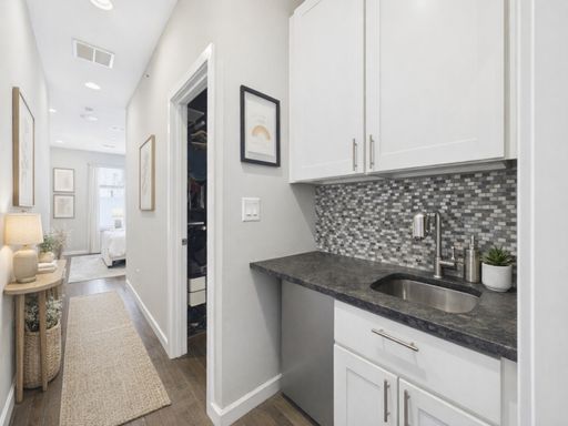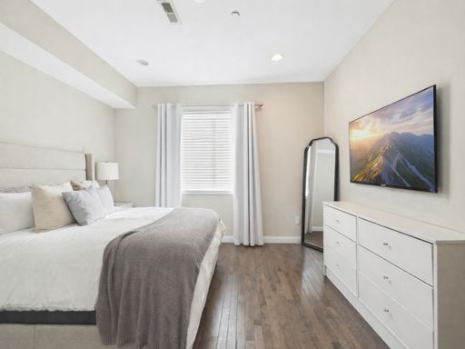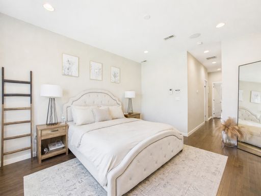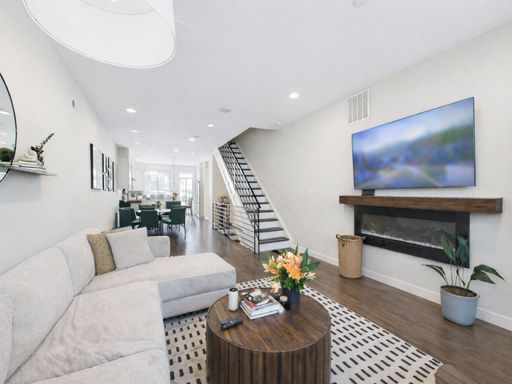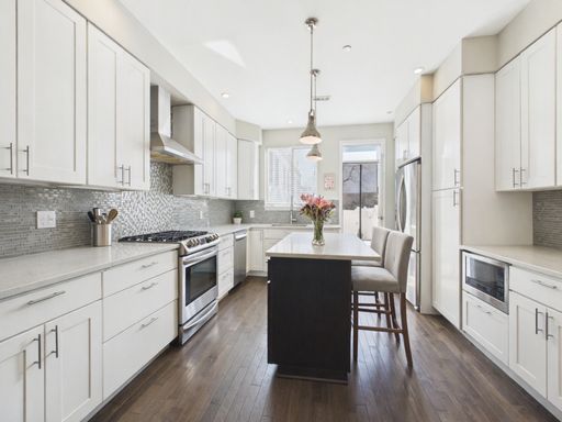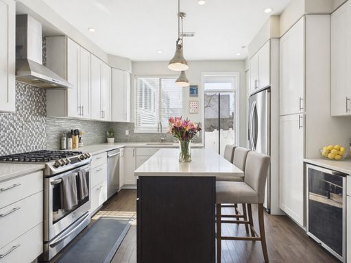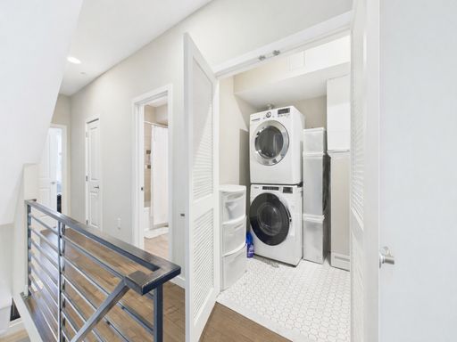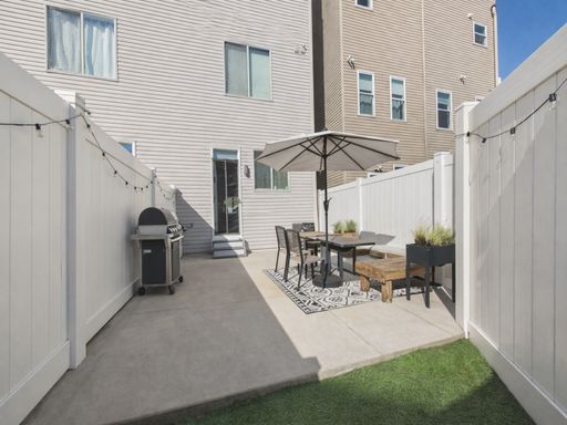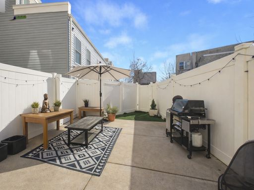 Enjoy multiple outdoor spaces including a private backyard patio and a massive rooftop deck with stunning skyline views, perfect for relaxing or entertaining. Additional features include in-unit laundry, modern designer bathrooms, and abundant natural light.