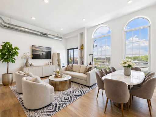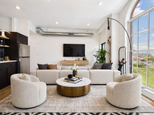 Modern 1-bedroom, 1-bath apartment in the heart of Port Richmond, offering a clean, contemporary feel with an abundance of natural light throughout. The open-concept living space features large arched windows that flood the unit with sunlight, along with a private balcony just off the living room—perfect for enjoying fresh air and city views.