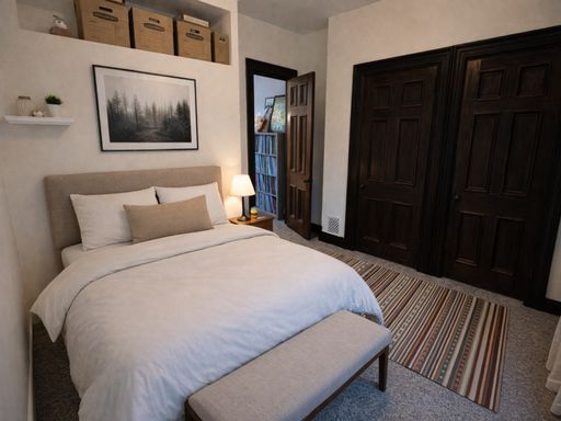 The bedroom is well-sized with great natural light and closet space, offering a comfortable retreat. A clean, updated bathroom includes a full tub and modern finishes.