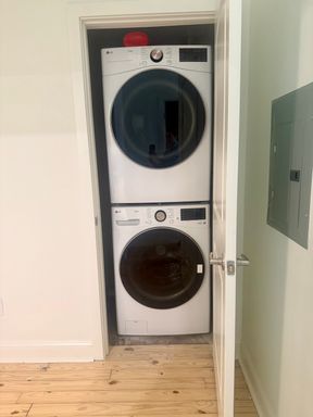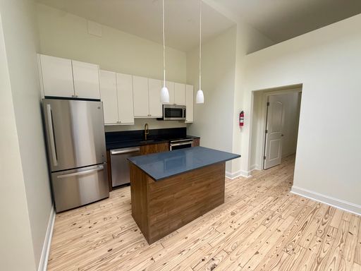 This bright unit offers hardwood floors throughout, central heat/air, modern kitchen, large closets, great separate office space, in unit washer/dryer, skylight, high ceilings, a large layout and a balcony off of the bedroom.