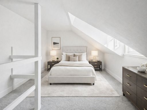 An opportunity to rent this spacious 3 bedroom bilevel apartment in a great Bella Vista location. The apartment has been freshly painted with new carpeting in the 3 bedrooms. This apartment spans the entire length of the 3rd floor. There is a very large living area with hardwood floors, loads of natural light and an adjacent kitchen. To the rear is the full bathroom and the large rear bedroom. At the front of this level is a large front bedroom with bay windows and wonderful light with built in closets. There is a wooden staircase to the top floor which is a newly carpeted large loft area which has served as a great 3rd bedroom with ceiling windows.