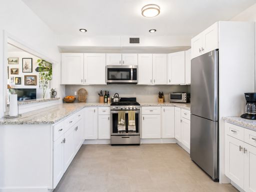 The modern kitchen is equipped with stainless steel appliances, ample cabinet space, and sleek countertops—perfect for both everyday living and entertaining. The living area offers plenty of room to relax and flows seamlessly into the rest of the home.